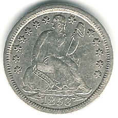 1853 dime minted in Philadelphia |